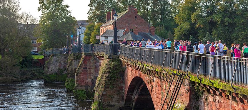 You can expect some fast times over this stunning PB marathon course on closed roads covering 19 miles in England and 7 miles in Wales. You will run past all Chester's iconic landmarks (Roman Walls, Cathedral, Medieval Rows, Eastgate Clock, Amphitheatre) before heading out to the stunning Cheshire and North Wales countryside and villages; returning alongside the River Dee for a unforgettable finish on Castle Drive. The support in the villages and communities along the course is one of the many highlights of the race.
